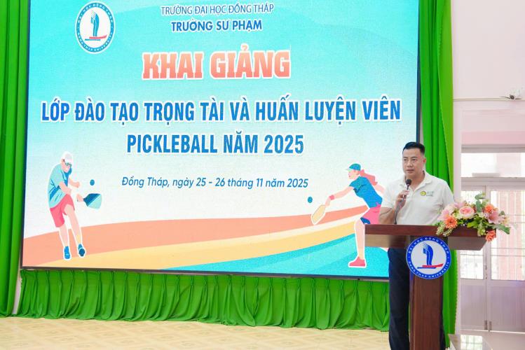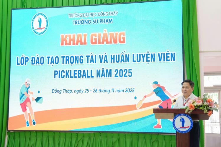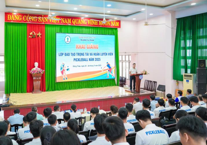 On November 25, Dong Thap University held the opening ceremony of the Pickleball Coaches and Referees Training Course 2025, with the participation of more than 60 trainees. The course is designed to provide a professional training environment, helping trainees access foundational knowledge, gradually improve their skills, and equip themselves with the necessary competencies for the roles of Pickleball coach and referee.