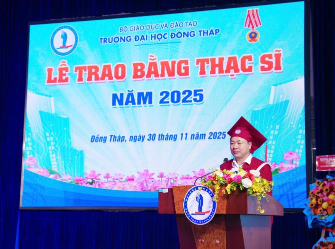 In his speech at the opening ceremony, Assoc. Prof. Dr. Ho Van Thong – Rector of the University shared: “Dong Thap University aims to train human resources, nurture talents, and contribute the advancement of knowledge to the development of the nation and the region. With more than 50 years of tradition in training teachers and educational administrators, over 20 years of multi-disciplinary university education, 13 years of Master’s training, and 6 years of Doctoral training, the University continues to affirm its position as a prestigious center for training, research, and innovation in Vietnam and Southeast Asia. Today, we congratulate 84 students of cohorts 11 and 12 who have completed their graduate programs and are honored with the Master’s degree – the result of effort, perseverance, and silent sacrifices. We wish the doctoral candidates to keep their passion alive and achieve many scientific accomplishments in the future.”