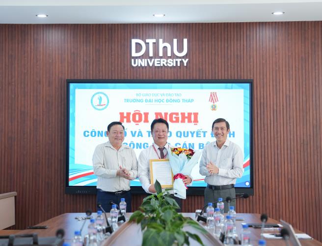 Speaking at the ceremony, Assoc. Prof. Dr. Ho Van Thong – Rector of Dong Thap University – congratulated the newly appointed staff and expressed his expectations that they will continue to demonstrate competence, responsibility, and dedication in both academic and administrative work, contributing positively to the University’s development.