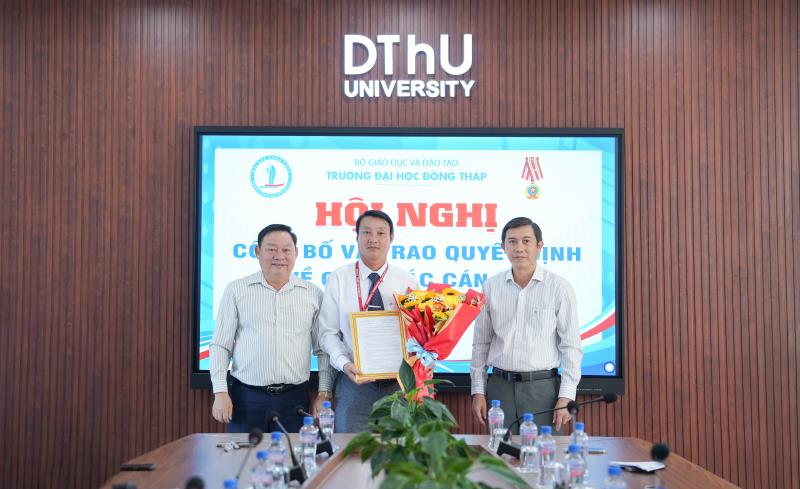 On December 1, at the Rectorate Meeting Room, Building of Aspiration, Dong Thap University held a conference to announce and present decisions regarding personnel appointments.