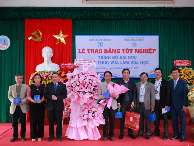 On this occasion, the leadership of Dong Thap University expressed gratitude to the Board of Rectors of Da Lat College and the staff and lecturers of both institutions for their close coordination in organizing training, management, and learner support, contributing to ensuring the quality and effectiveness of the program.