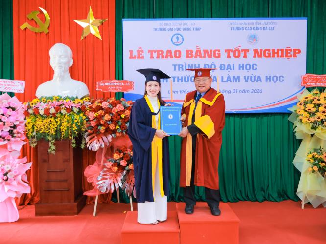On January 24, Dong Thap University, in collaboration with Da Lat College, held the Graduation Ceremony for 58 students of the part‑time undergraduate program in Early Childhood Education.