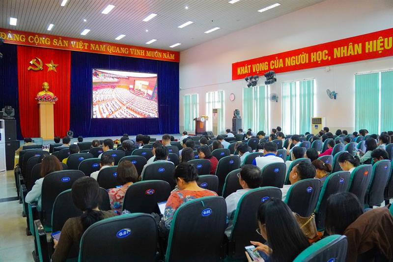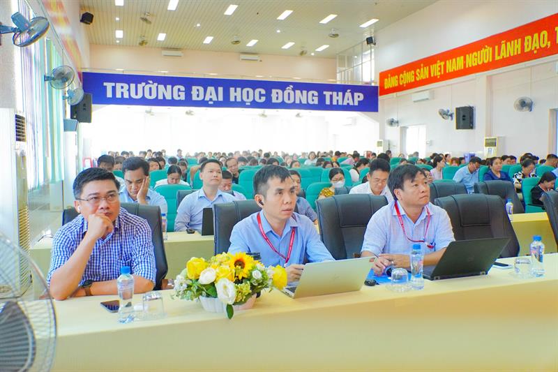 On the morning of February 7, at the Dong Thap University venue, more than 500 Party members working and studying at the university actively participated in studying, learning, grasping, and implementing the Resolution of the XIV National Party Congress at the national conference. The conference was held in a on-site format combined with online connections to ministries, sectors, localities, agencies, and units across the country.