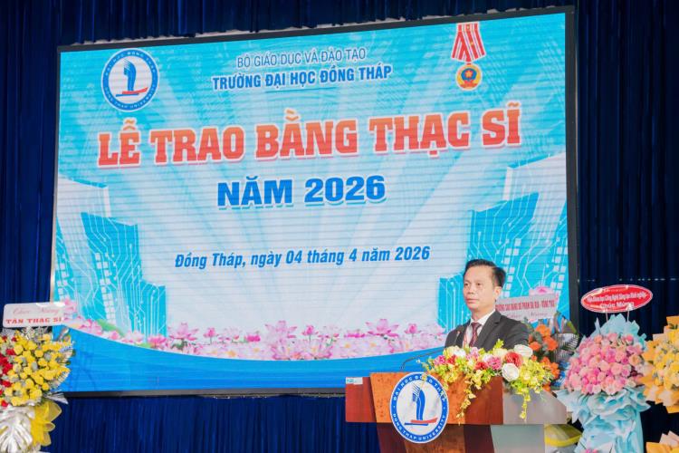 Speaking at the event, Dr. Nguyen Quoc Vu – Vice President of Dong Thap University – congratulated the new master’s graduates on completing their studies. With its mission of training high-quality human resources, Dong Thap University consistently emphasizes the integration of education, research, and community service. The University is committed to accompanying learners throughout their long-term academic and professional development, and welcomes graduates to continue their studies at higher levels to better serve their professional work and contribute to local development.